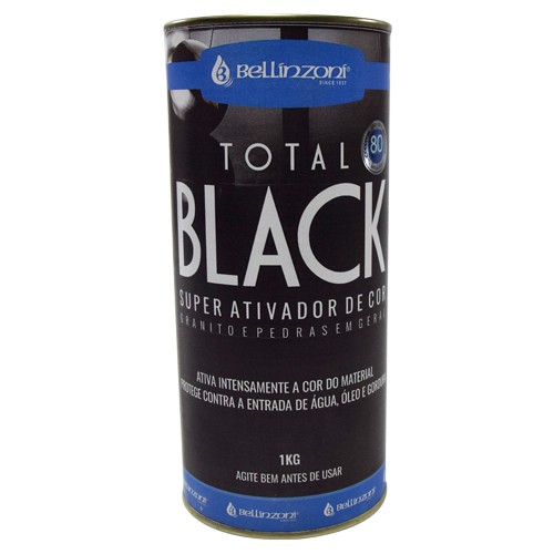 O super ativador de cor Total Black é um poderoso produto de cor preta com alta capacidade de penetração na superfície de mármores ou granitos pretos ou escuros. Ativa intensamente a cor do material, eliminando o aspecto “cinzento” ou “russo” através de uma profunda penetração de pigmentação preta que age rapidamente apenas com a aplicação feita com uma estopa. Proporciona escurecimento de cristais componentes de alguns materiais, dando mais uniformidade à sua cor natural. Protege contra água, óleo e gordura.